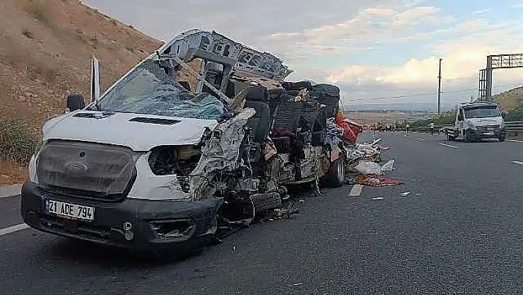 Kaza, dün akşam saatlerine doğru Gaziantep-Şanlıurfa Otoyolu Nizip ilçesi yakınlarında meydana geldi. Diyarbakır'dan yola çıkan Necati Demir idaresindeki 21 ADE 794 plakalı yolcu minibüsü, refüjdeki otları temizleyen 33 ACR 915 plakalı Çetin Koçarslan kontrolündeki karayolları kamyonuna çarptıktan metrelerce savruldu. Feci kaza sonucu 5 kişi hayatını kaybederken 17 kişi de yaralandı.