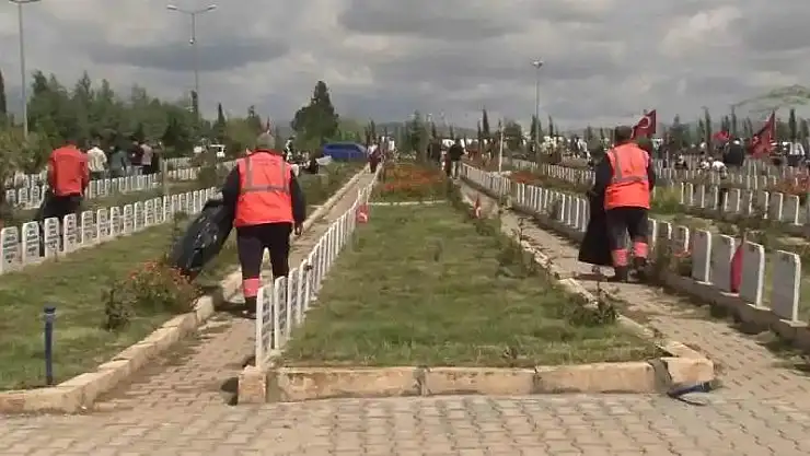 6 Şubat depremlerinde ağır hasar alan iller arasındaki Adıyaman’da, Ramazan Bayramı buruk bir şekilde kutlanıyor. Depremde hayatını kaybeden yakınlarının Adıyaman Belediyesi Yeni Mezarlık içerisindeki kabirlerini ziyaret eden binlerce vatandaşın temiz bir ortamda sevdikleriyle özlem gidere bilmesi için Adıyaman Belediyesi Temizlik İşleri Müdürlüğünde görevli temizlik personelleri çalışmalarına devam ediyor.