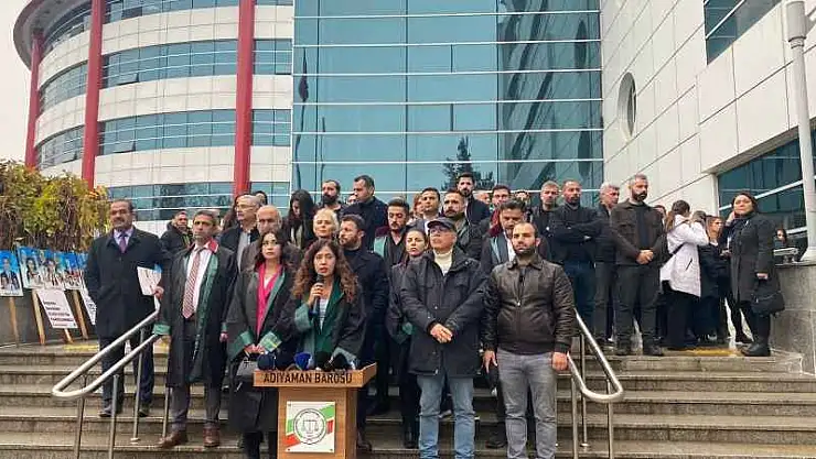 Adıyaman Adliyesi önünde düzenlenen basın açıklamasına çok sayıda avukat katılım sağlarken açıklama Avukat Ayşenur Altuntaş tarafından okundu.