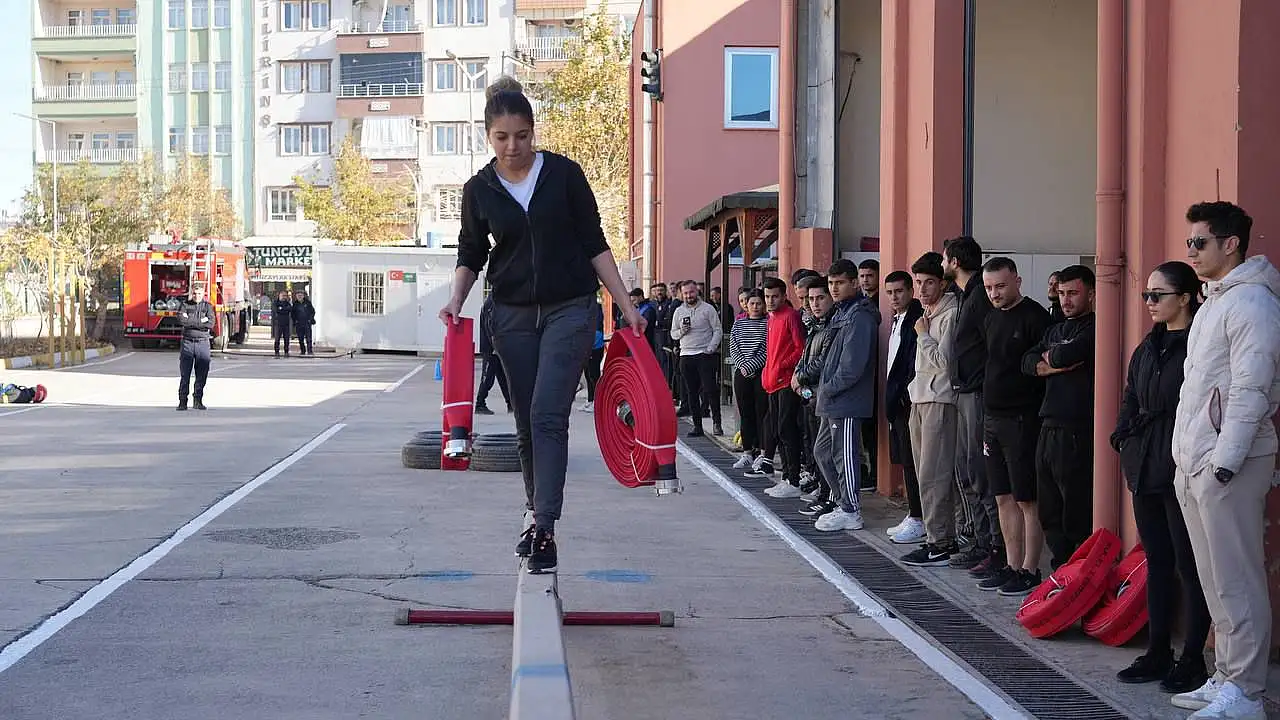 İtfaiye Müdürlüğü bahçesinde kurulan parkurda sınav öncesinde adaylara, itfaiye personeli tarafından parkurun etapları ve uygulanacak kurallar detaylı şekilde aktarıldı. Ardından kadın ve erkek adaylar; dayanıklılık, çeviklik ve hız gerektiren etaplarda zamanla yarışarak ter döktü.