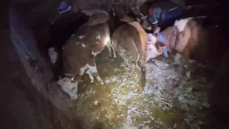 Adıyaman’da yoğun kar yağışına dayanamayan ahır çöktü. 20 büyükbaş hayvandan 3’ü telef oldu.