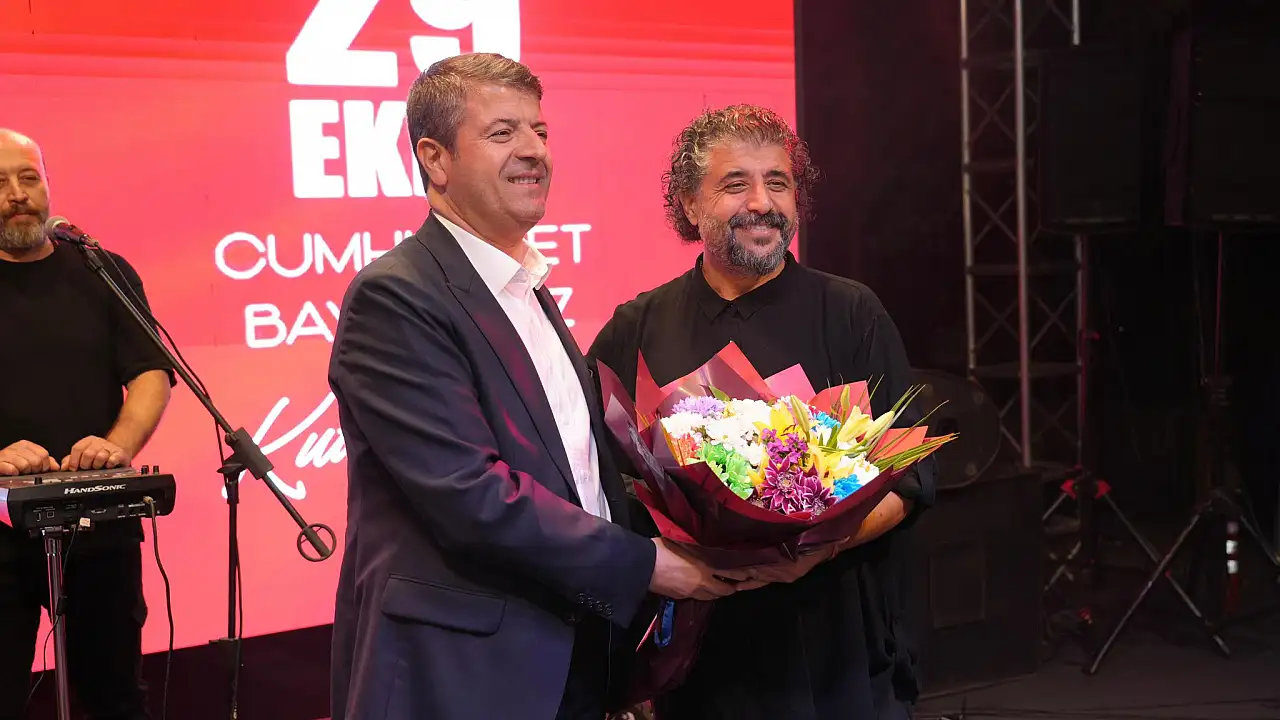 Cumhuriyet konseri öncesinde sanatçılar Mustafa Özarslan ve Güven Taştan’a çiçek takdim eden Başkan Tutdere, konuşmasında birlik, dayanışma ve demokrasi vurgusu yaptı: