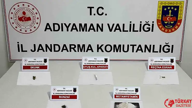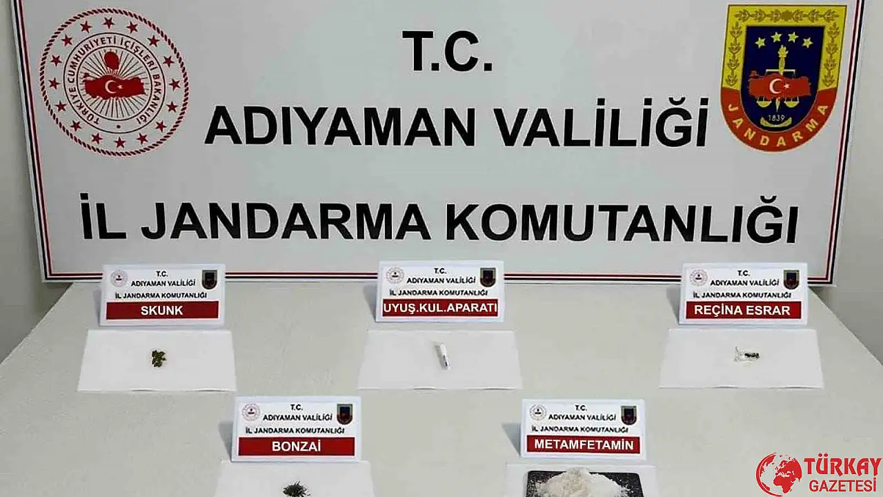 Adıyaman İl Jandarma Komutanlığı ekipleri uyuşturucuyla mücadele çalışmaları çerçevesinde yaptıkları denetimlerde 450 gram metanfetamin, 7 gram skunk, 3 gram reçine esrar, 2 gram bonzai ve 1 adet uyuşturucu içiminde kullanılan aparat ele geçirdi. Uyuşturucu maddeleri muhafaza altına alınırken konuyla ilgili olarak 25 şahıs hakkında ise işlem yapıldı.