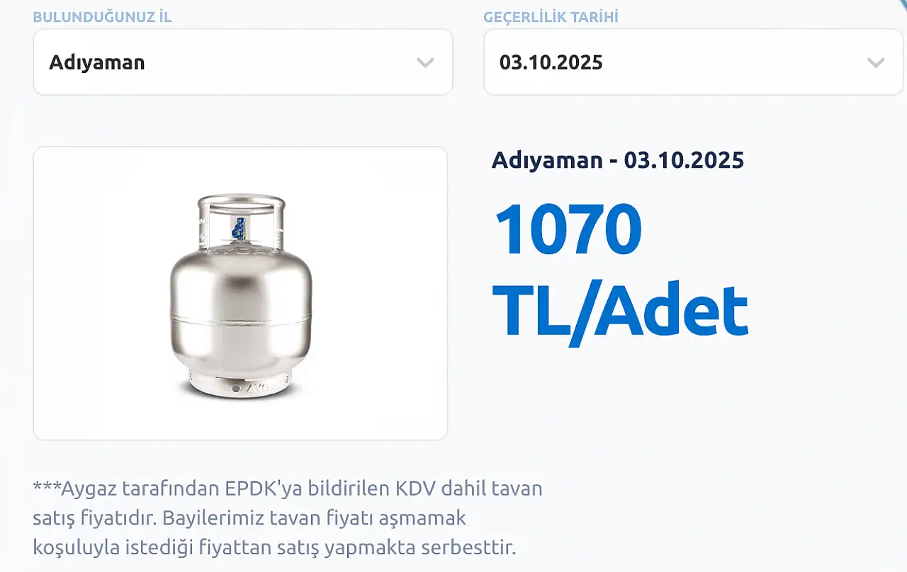 3 Ekim 2025 itibariyle yeni tüp alacak vatandaşlar artık 1070 TL ödeme yapacak.