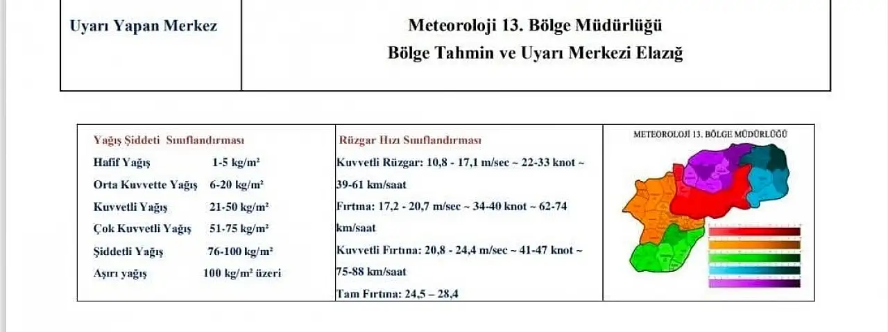 13. Bölge müdürlüğünden yapılan yağış uyasında şu ifadelere yer verildi;