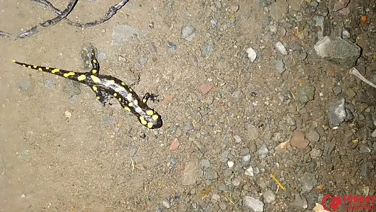 Adıyaman'da türüne az rastlanan ve nesli tükenmekte olduğu için koruma altına alınan sarı benekli semender görüldü.