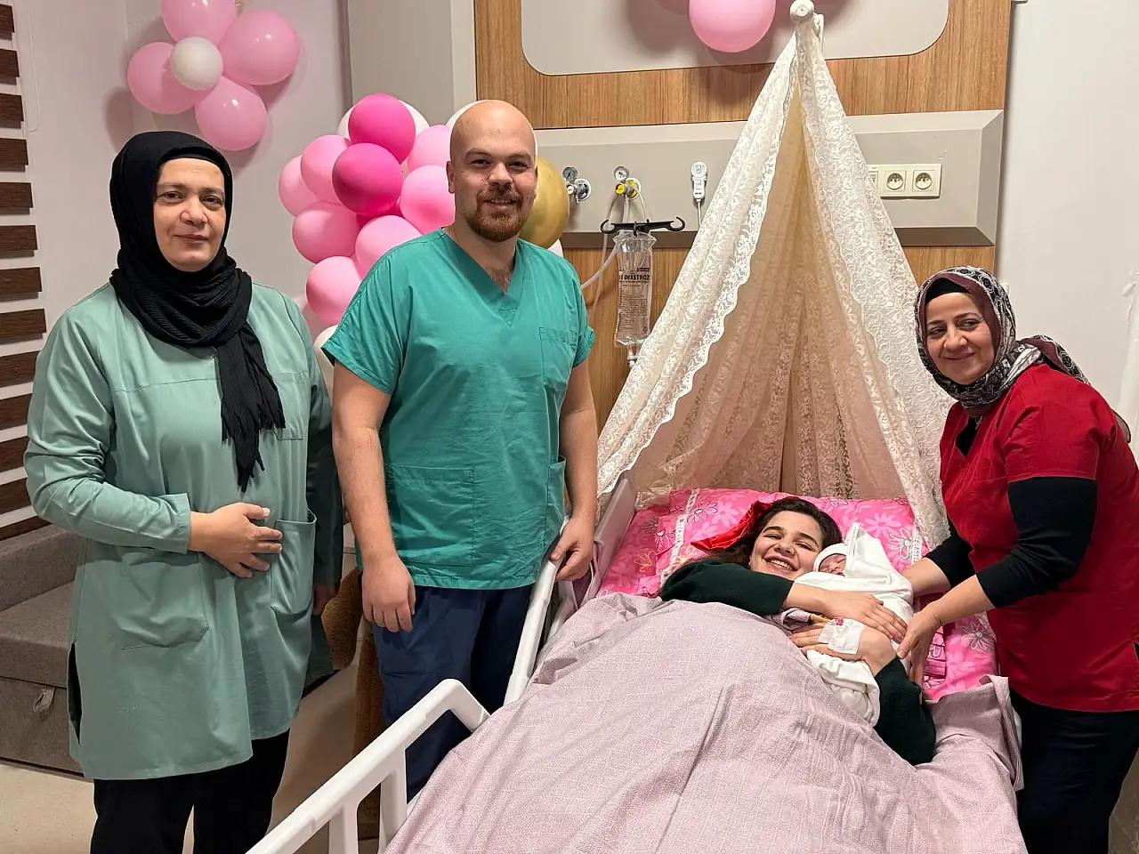 Gamze ve Muhammet Mustafa Bozkurt çiftinin ilk çocuğu olan Rüya, 2026 yılının ilk dakikalarında 3 kilo 350 gram ağırlığında doğdu. Adıyaman Eğitim ve Araştırma Hastanesi’nde doğumu gerçekleştiren Kadın Hastalıkları ve Doğum Uzmanı Op. Dr. Alper Solmaz, anne ve bebeğini serviste ziyaret ederek geçmiş olsun dileklerini iletti. Solmaz, hastanın sağlıklı bir şekilde yavrusuna kavuştuğunu ve doğumun saat 00.05’te gerçekleştiğini belirtti.
