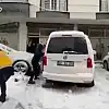 Adıyaman'da, vakadan dönen sağlık personelleri ile çocukların kar topu savaşı yüzleri gülümsetti.
