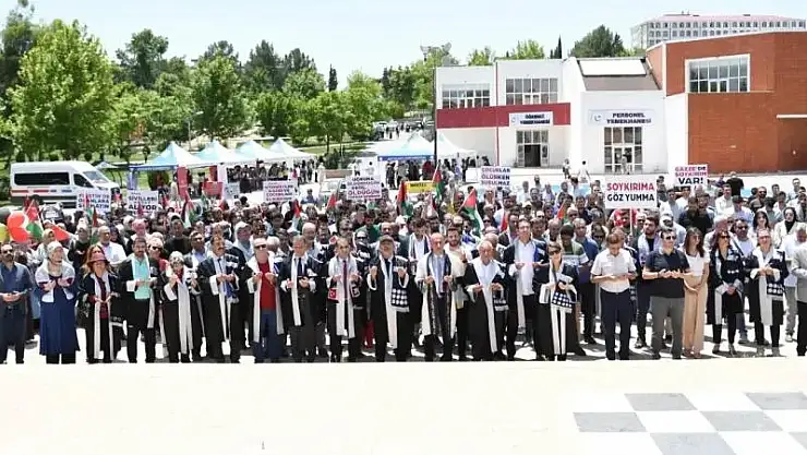 Adıyaman üniversitesi akademik personeli ve öğrencilerden oluşan topluluk, İsrail'in Refah kentinde yerinden edilen Filistinlilerin bulunduğu kampa düzenlediği insanlık dışı saldırıyı protesto etti.