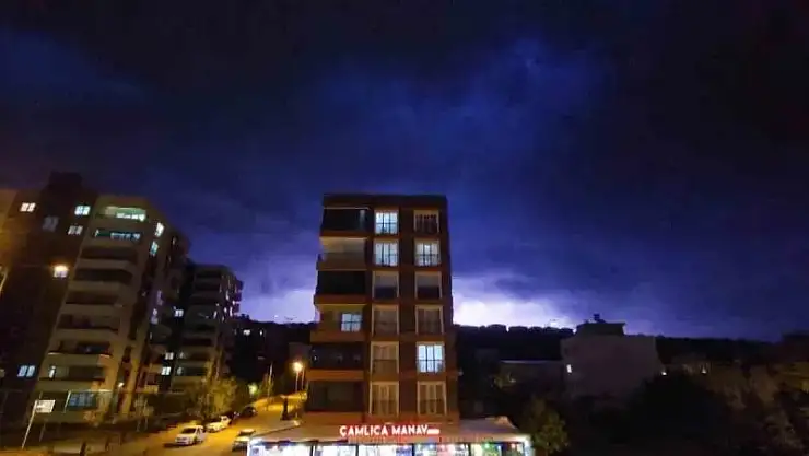 Adıyaman'da kısa süreli sağanak etkili olurken, çakan şimşekler geceyi aydınlattı.