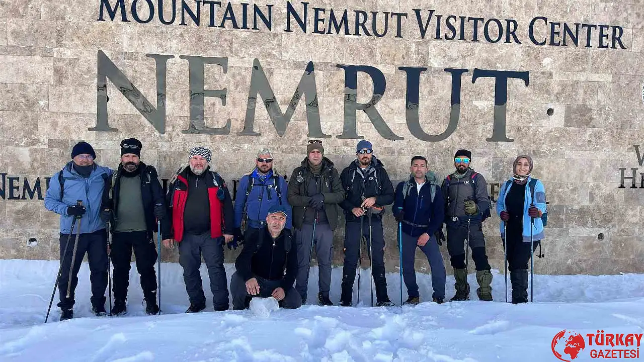 Adıyaman'da bir grup dağçı, karla kaplı Nemrut Dağı zirvesine tırmandı.