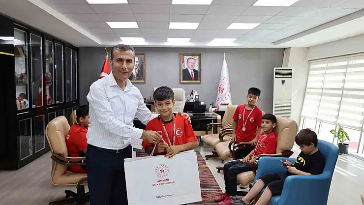 Şampiyona dönüşü Gençlik ve Spor İl Müdürü Fikret Keleş, başarılı sporcuları ve antrenörleri Gökhan Çalğan ile Mehmet Sarıkaya’yı makamında ağırlayarak tebrik etti.