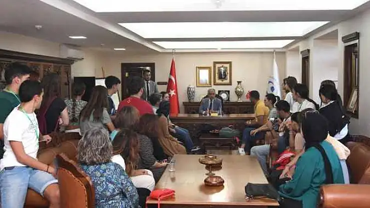 Misafirler, Proje Koordinatörü Gülcan Kaplan öncülüğünde rektörlük makamında Adıyaman Üniversitesi Rektörü Prof. Dr. Mehmet Turgut ile bir araya geldi.