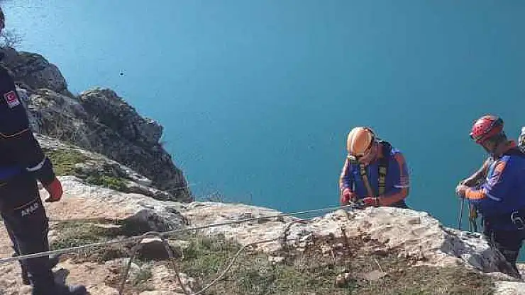 Adıyaman'da AFAD ekipleri tarafından kayalıklarda mahsur kalan keçiler kurtarıldı.