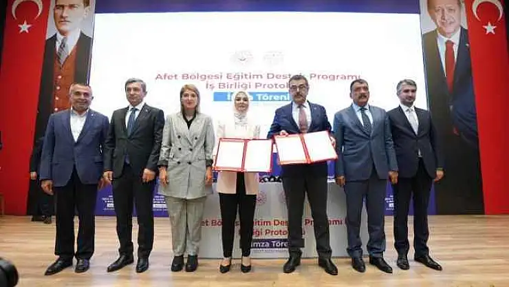 'Afet Bölgesi Eğitim Destek Programı İşbirliği Protokolü', Millî Eğitim Bakanı Yusuf Tekin ile Aile ve Sosyal Hizmetler Bakanı Mahinur Özdemir Göktaş'ın katılımıyla Malatya'da imzalandı.