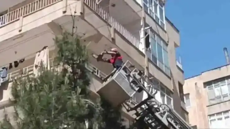 Edinilen bilgiye göre olay, Şanlıurfa’nın Haliliye ilçesine bağlı Veysel Karani Mahallesi’nde yaşandı. Ayaklarındaki ipin ağacın dallarına dolandıktan sonra mahsur kalan bir güvercin olduğunu fark eden vatandaşlar durumu itfaiye ekiplerine bildirdi. Olay yerine gelen ekipler, itfaiye aracının merdivenini ağaca uzaktı. Merdivenden tırmanan itfaiye eri, güvercini mahsur kaldığı yerden aldı.