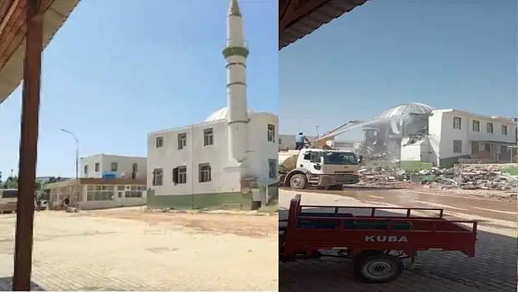 Kahramanmaraş merkezli 2 büyük depremde Karkamış'ta hasar alan bir cami kontrollü olarak yıkıldı.
