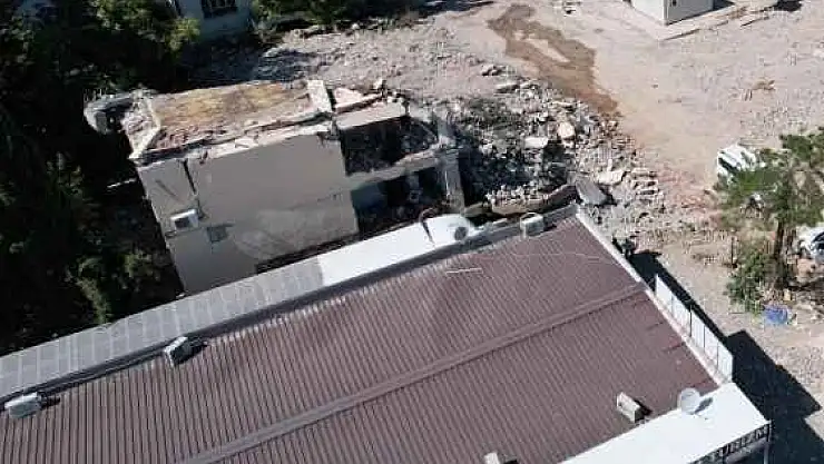 Adıyaman'da depremde ağır hasar alan binanın yıkımı esnasında düşen duvar, prefabrik çarşıda bulunan bir iş yerinin üzerine düştü.