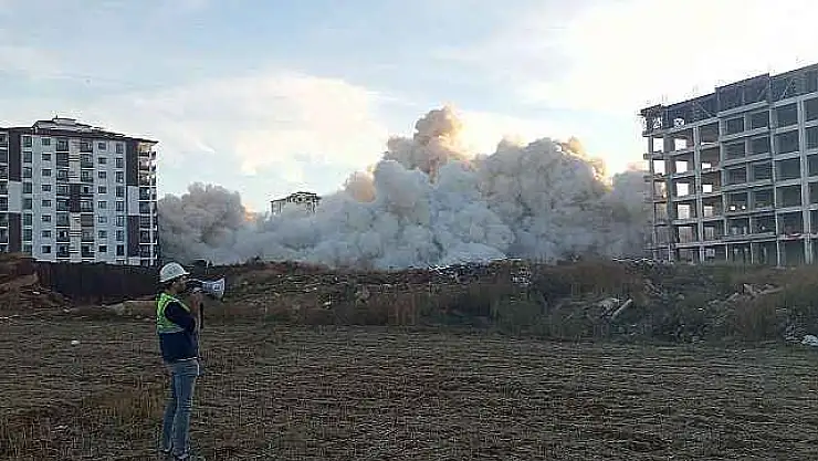Malatya'da ağır hasarlı yüksek katlı binaların patlayıcı ile yıkımlarına devam ediliyor.