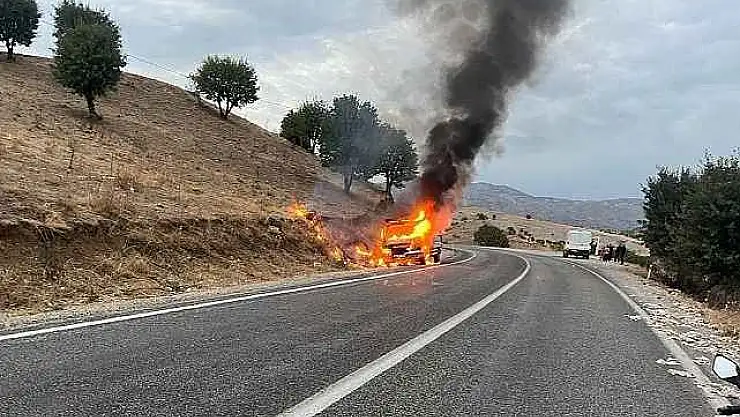 Adıyaman'ın Sincik ilçesinde 3 kişinin içerisinde bulunduğu kamyonet biranda yanarak alev topuna döndü. Kamyonet içerisindeki 3 kişi yanmaktan son anda kurtuldu.