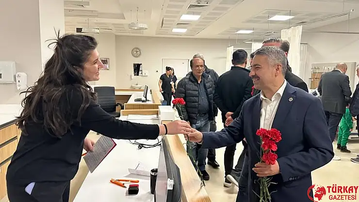 Hastane ziyaretinde Milletvekili Mustafa Alkayış, Merkez ilçe başkanı Mehmet Fatih Olgun, Hastane Başhekimi Kasım Turgut ve Sağlık Sen Adıyaman Şube başkanı hastane çalışanlarının Tıp bayramını kutlayıp karanfil takdim etti.