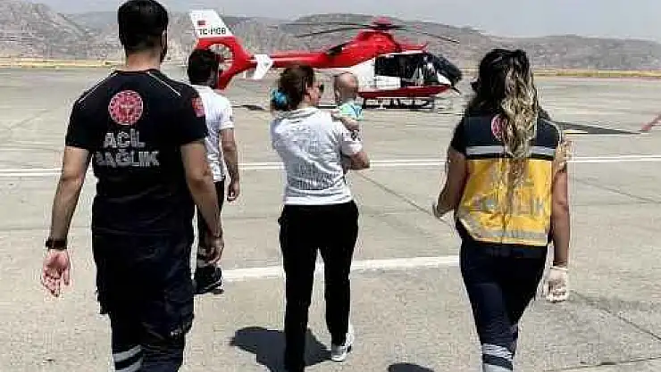 Şırnak'ta boğazına çengelli iğne kaçan 5 aylık bebek, tedavi için ambulans helikopterle Şanlıurfa'ya nakledildi.