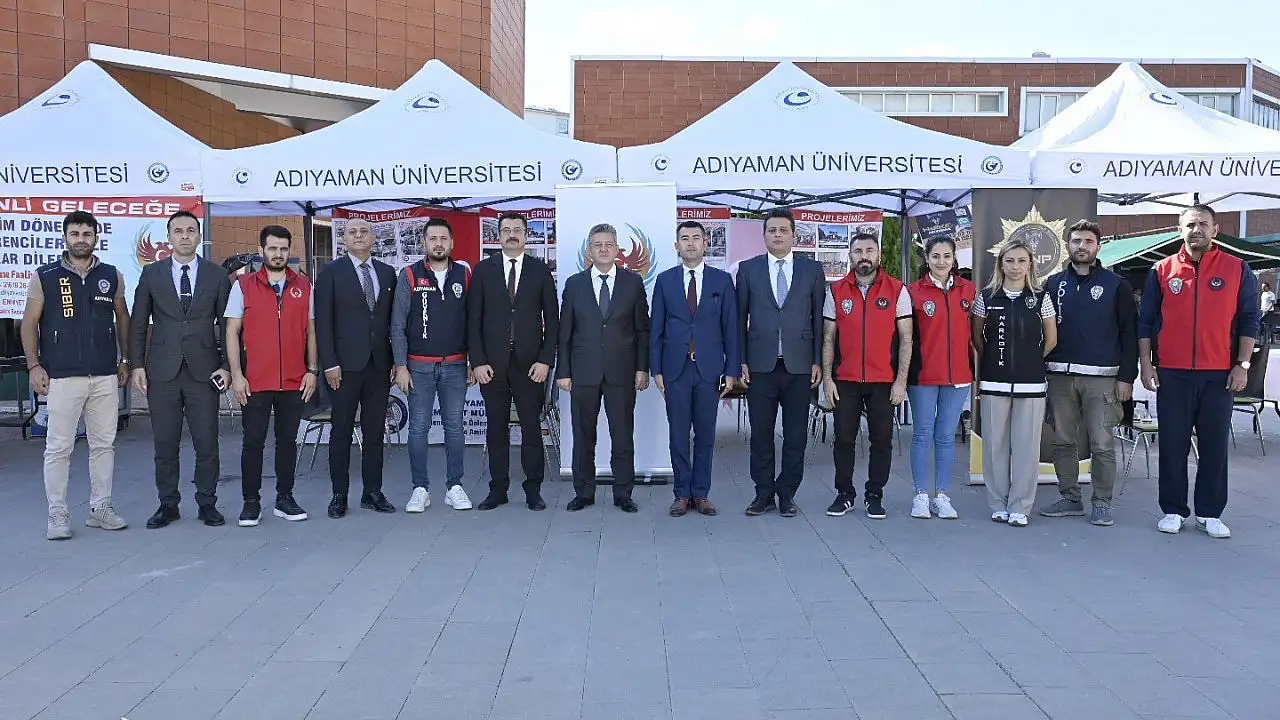 Adıyaman İl Emniyet Müdürü Arzum Nazman, "El Ele Güvenli Geleceğe" projesi kapsamında Adıyaman Üniversitesinde kurulan bilgilendirme stantlarını ziyaret etti.