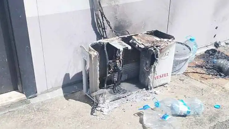 Adıyaman'da yapılan Vatana Prefabrik Evlerdeki bir evin kliması aşırı sıcaklarda 2 gün boyunca hiç durmadan çalışınca yandı.