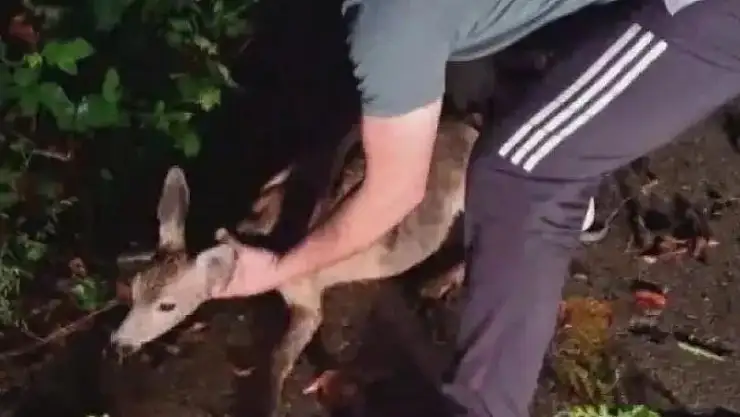 Hatay’ın Dörtyol ilçesi Topaktaş Yaylası yolu üzerinde bariyerlerin altında mahsur kalan yavru karacayı fark eden Ahmet Ziya Kaplan, yardıma koştu. Ayağından yaralı olan yavru karacayı kurtaran Kaplan, hayvanı aracının bagajında ilçe merkezine taşıdı. Kaplan’ın yaralı karacayı kurtarma anıysa cep telefonu kamerasına yansıdı. Kaplan tarafından kurtarılan yavru karaca, Doğa Koruma ve Milli Parklar Müdürlüğü ekiplerine teslim edildi. Duyarlı vatandaşsa yaptığıyla takdir topladı.