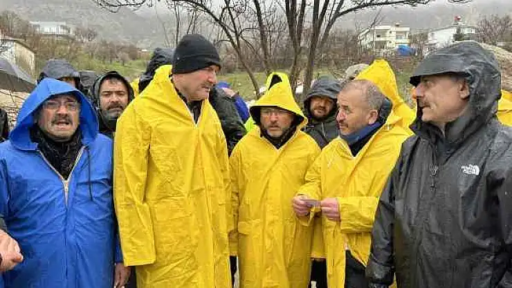 İçişleri Bakanı Süleyman Soylu, sağanak yağmurun sele döndüğü Adıyaman'ın Tut ilçesinde incelemelerde bulundu.