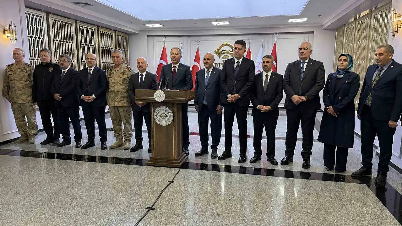 Kahramanmaraş merkezli depremlerin 3'üncü yıl dönümü dolayısıyla Adıyaman'a gelen Ali Yerlikaya, Adıyaman Valiliğinde açıklamalarda bulundu.