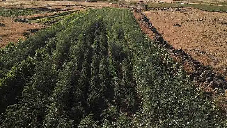 Şanlıurfa'nın Siverek ilçesinde bamya tarlasında ekili vaziyette 352 kök kenevir bitkisi ele geçirildi.