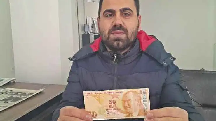 Adıyaman'ın Gölbaşı ilçesinde, Aykut Uçan, basım hatası olan 50 TL'yi 100 bin TL karşılığında satışa çıkarttı.