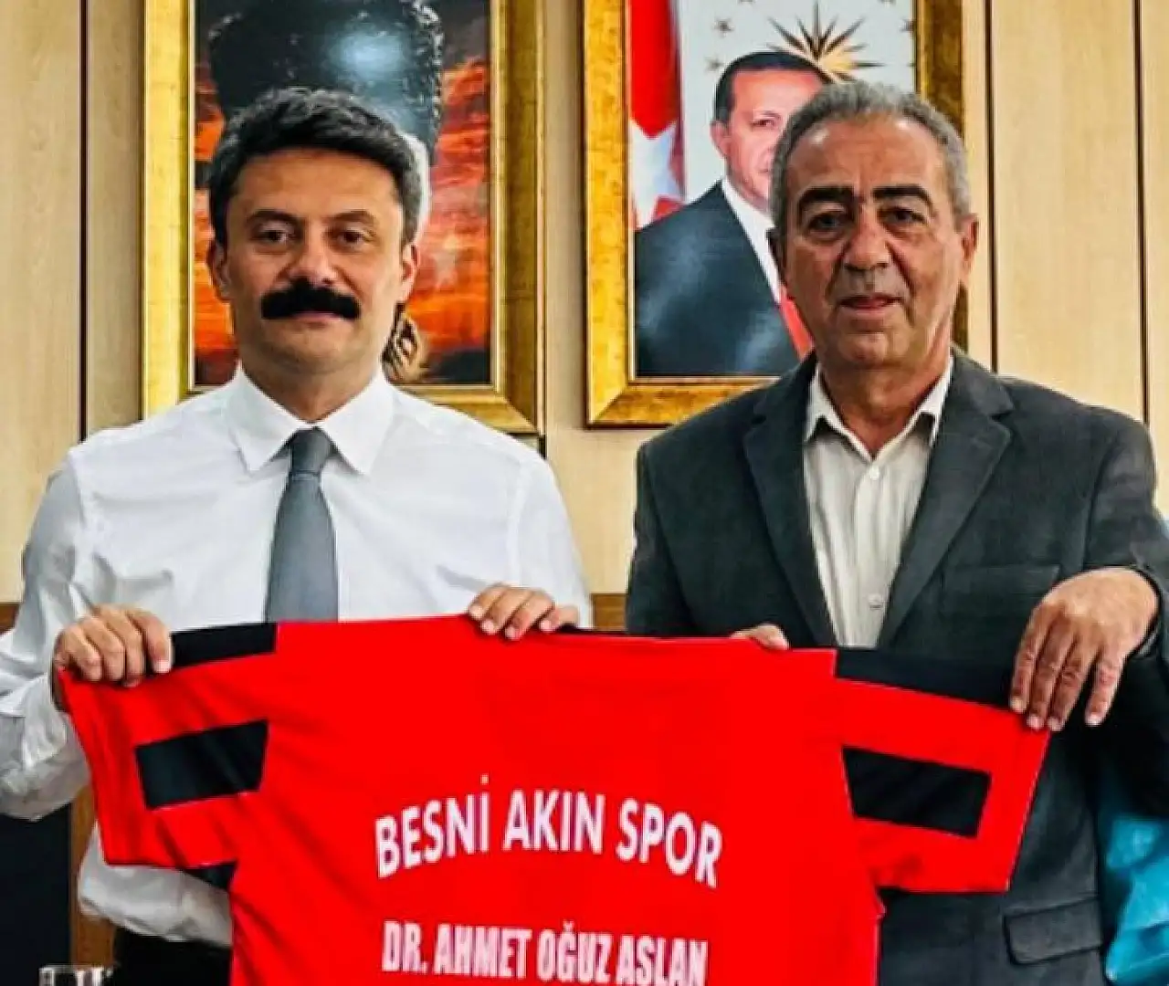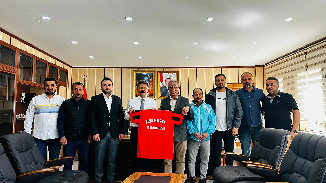 Besni Akınspor Kulüp Başkanı Erhan Akdağ, Besni Kaymakamı Dr. Ahmet Oğuz Aslan'ı makamında ziyaret etti. Başkan Akdağ ziyarette kaymakam Aslan'a Besni Akınspor forması hediye etti.