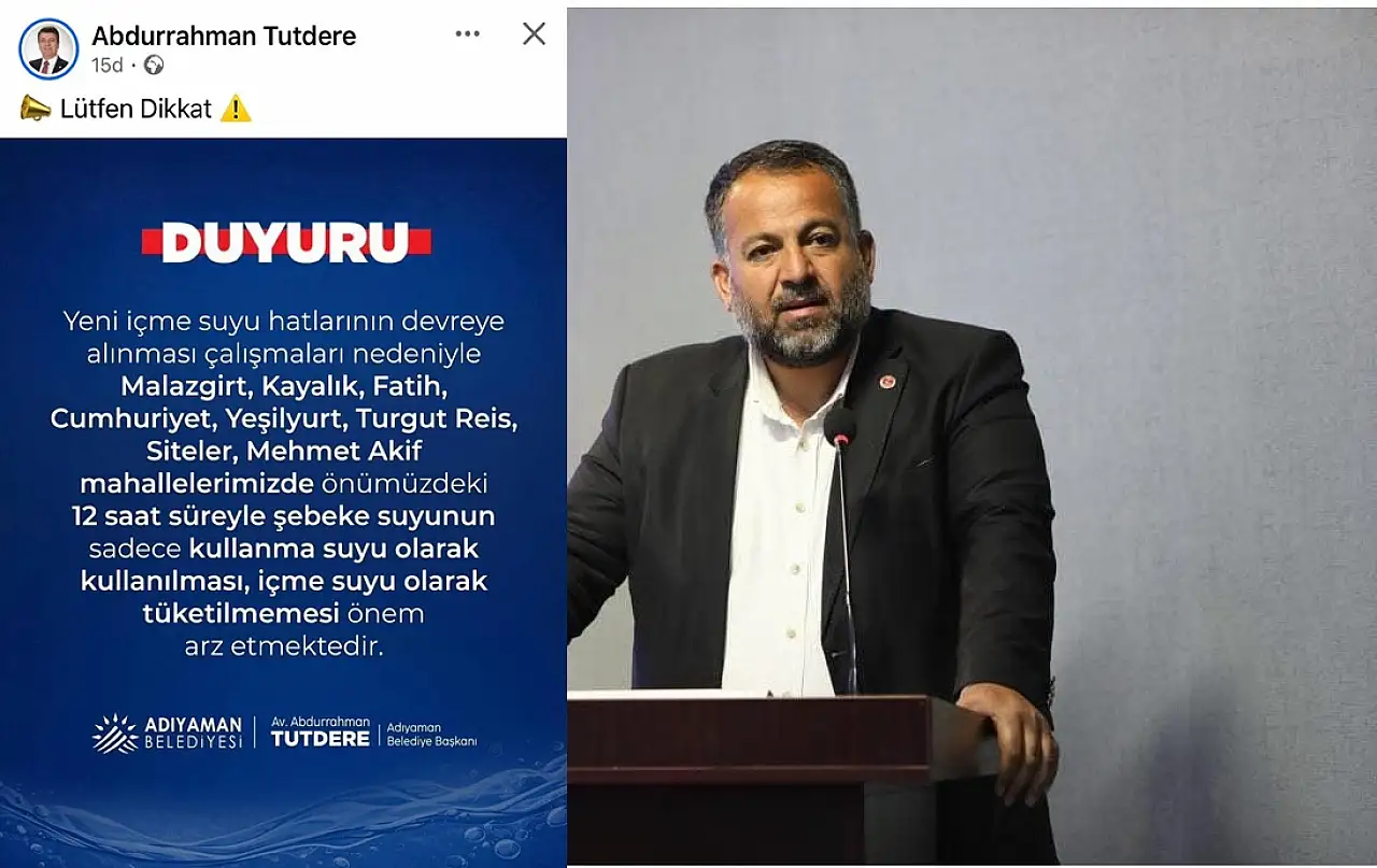 Saadet Partisi Adıyaman İl Başkanı Haşim Asnuk, içme suyunun gün içerisinde içilmeyecek durumda olduğunu ancak Adıyaman Belediyesin uyarıyı akşam saat 20:20’de yapmasına tepki gösterdi.