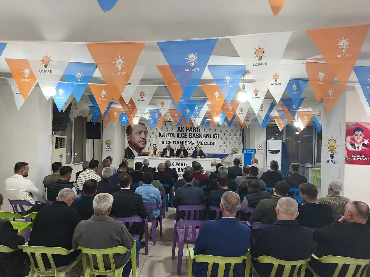 Toplantıyla AK Parti Kahta İlçe Başkanı Gafar Çelebi, Kahta Belediye Başkanı Mehmet Can Hallaç, ilçe Gençlik Kolları Başkanı Furkan İnsan, İlçe Kadın kolları Başkanı Medine Maçin Teki ve partililer katıldı.