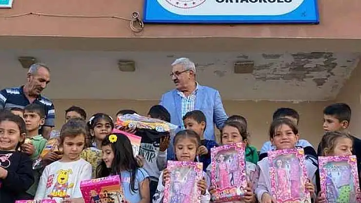 Akıncılar Belediye Başkanı İsmet Çetinkaya depremzede öğrencilere oyuncak, ayakkabı ve kıyafet yardımında bulundu.
