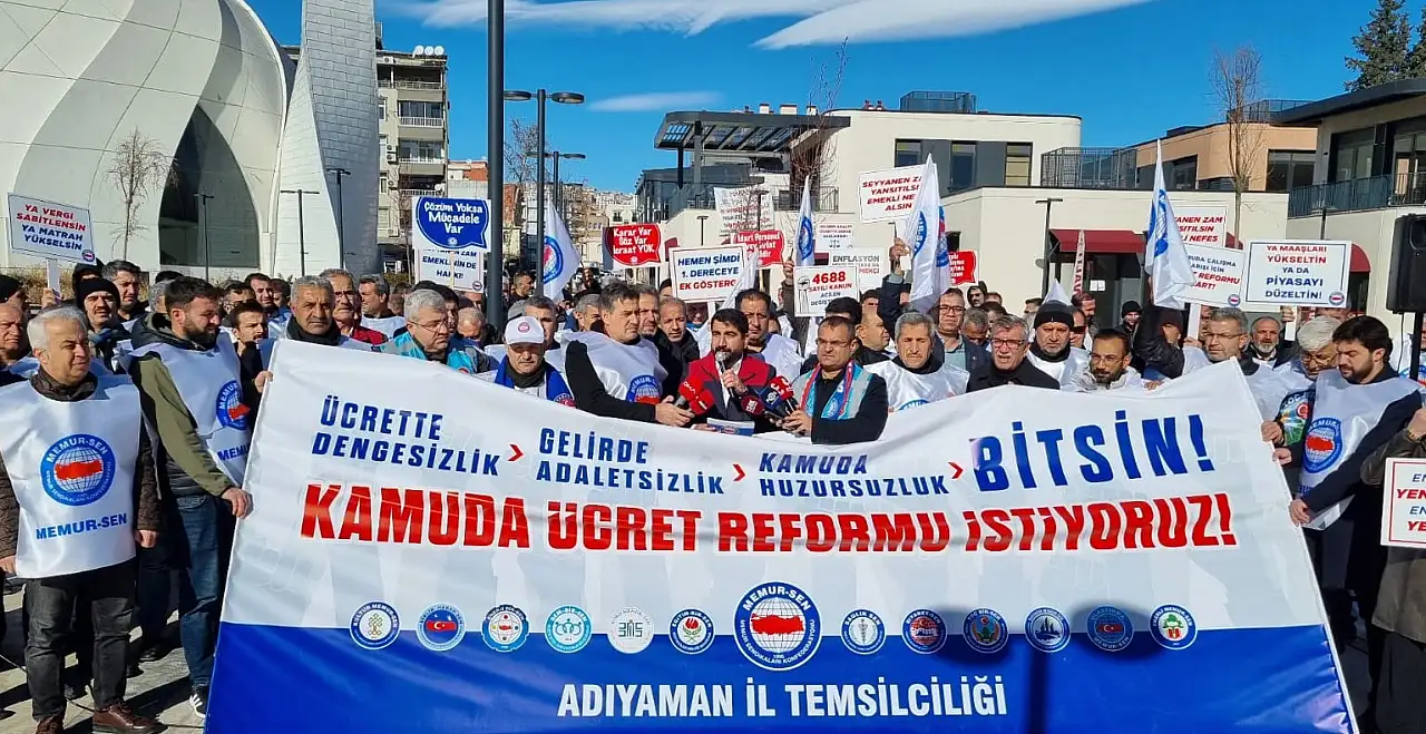 Memur-Sen Adıyaman İl Temsilciliği tarafından, kamuda ücret reformu talebiyle Adıyaman Meydan Camii önünde eylem ve basın açıklaması gerçekleştirildi. Ücrette dengesizlik, gelirde adaletsizlik ve kamuda huzursuzluk yaşandığı vurgusu yapılan basın açıklamasına Memur-Sen Konfederasyonuna bağlı hizmet kolu sendikalarının temsilcileri ve üyeleri ile birlikte kamu çalışanları katıldı.
