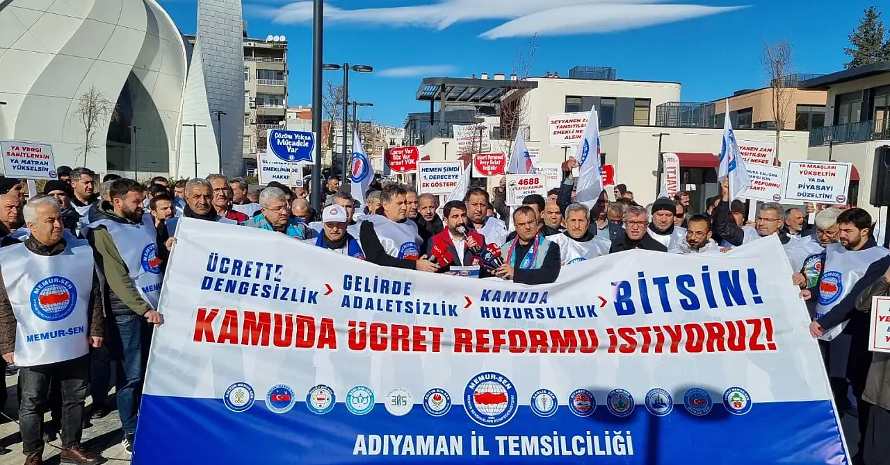 Memur-Sen Adıyaman İl Temsilciliği tarafından, kamuda ücret reformu talebiyle Adıyaman Meydan Camii önünde eylem ve basın açıklaması gerçekleştirildi.