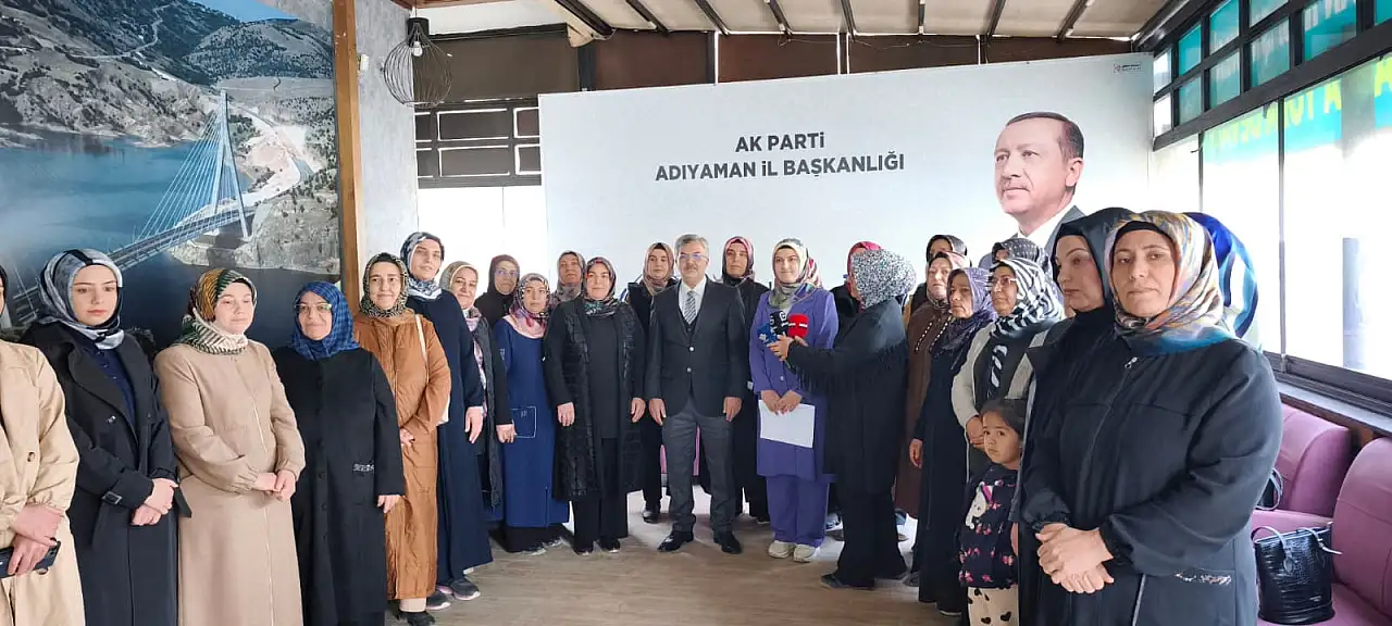 AK Parti İl Binasında düzenlenen basın açıklamasına AK Parti Adıyaman İl Başkanı Ekrem Gürcan Çadır, Kadın Kolları Başkanı Saliha Diler, yönetim kurulu üyeleri ve partililer katıldı.