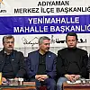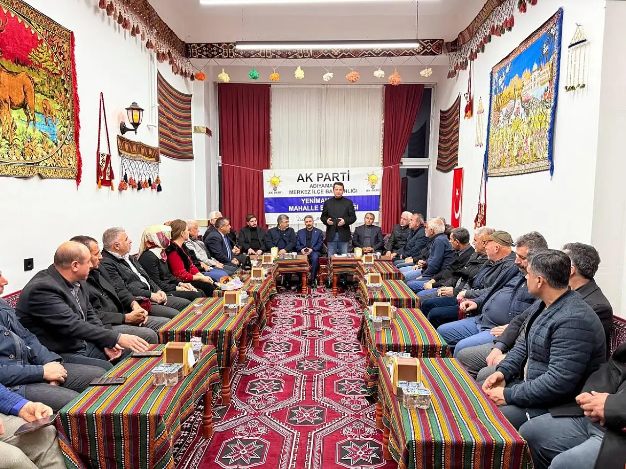 Toplantıyla ilgili açıklamada bulunan AK Parti Merkez İlçe Başkanı Mehmet Fatih Olgun: “Teşkilat Başkan yardımcımız ve Adıyaman Milletvekilimiz Mustafa Alkayış, İl Başkanımız Ekrem Gürcan Çadır ve Gençlik Kolları Başkanımız Hasan Ünsal’ın katılımıyla Yeni Mahalle Mahalle yönetim kurulu toplantımızı gerçekleştirdik. Toplantımızda; üye çalışmaları ve üye kayıt süreçleri, sandık bazlı çalışmalar ile genel gündem başlıkları ele alındı. Toplantımızın hayırlara vesile olmasını temenni ediyor, mahalle teşkilatlarımızı teşkilatımızın uç beyleri olarak gördüğümüz bu kutlu yolda tüm dava arkadaşlarımıza başarılar diliyor, mahalle başkanımız Mustafa Eskici'ye teşekkür ediyorum.” Dedi.