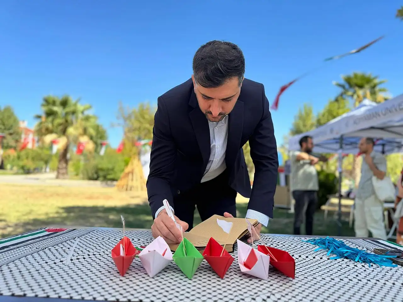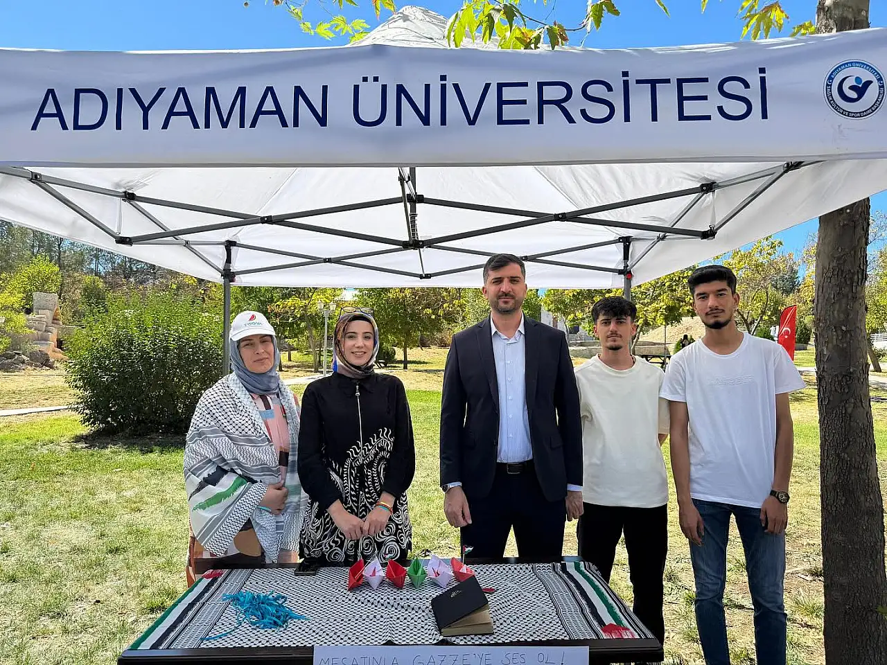 TÜVGA Adıyaman Şube Başkanı Recep Tepe Adıyaman Üniversitesi tarafından üniversite bahçesinde Filistin'e destek ve farkındalık amacıyla açılan stantları da gezdi.