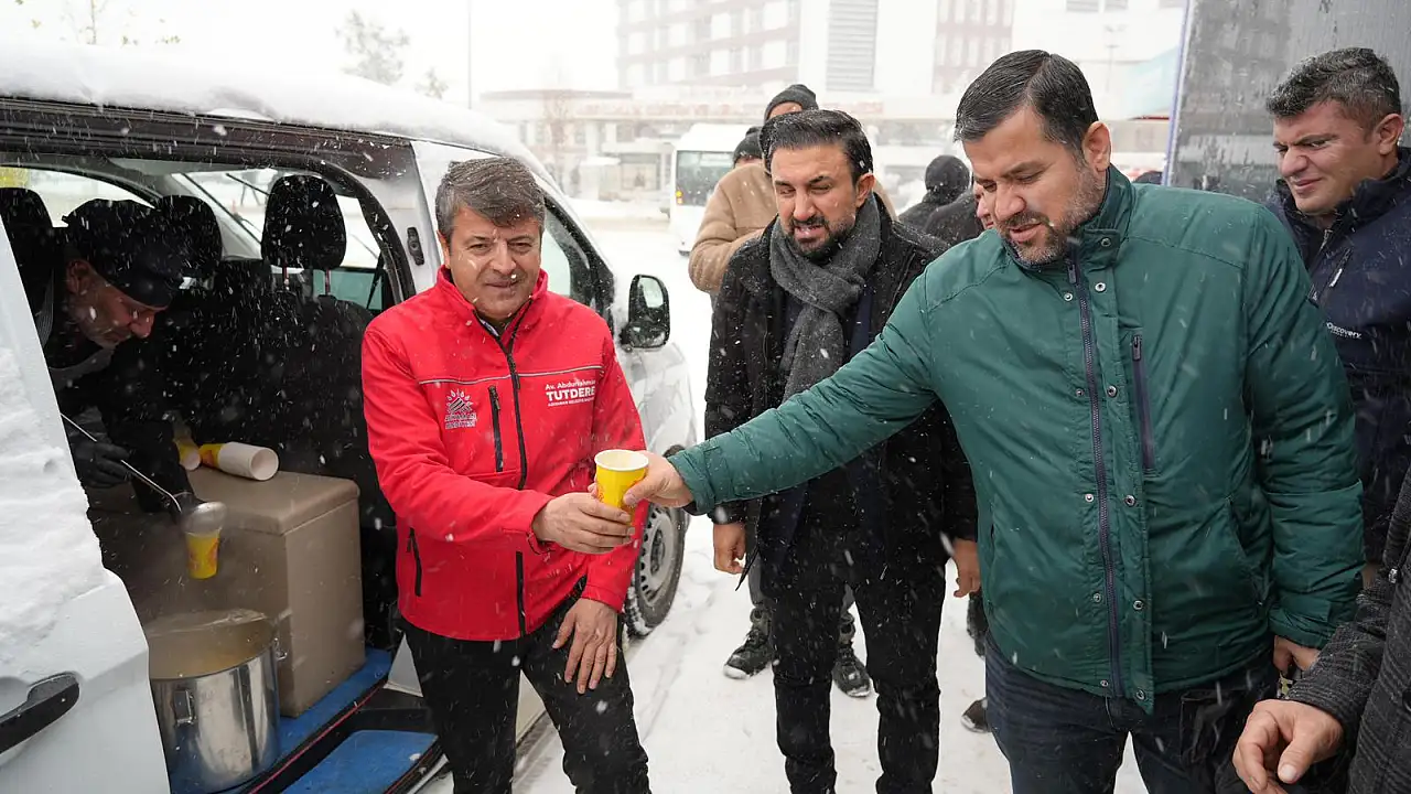 Adıyaman'da etkili olan yoğun kar yağışı altında ulaşım bekleyen vatandaşlara, Belediye Başkanı Abdurrahman Tutdere'den samimi bir destek geldi. Başkan Tutdere, Eğitim ve Araştırma Hastanesi önündeki duraklarda otobüs bekleyen hemşehrilerine sıcak çorba ikram etti.