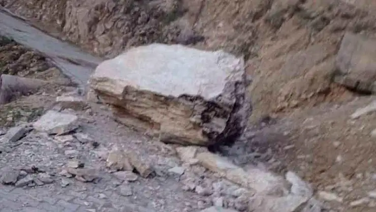 Batman'da düşen kaya parçası yolu ulaşıma kapattı