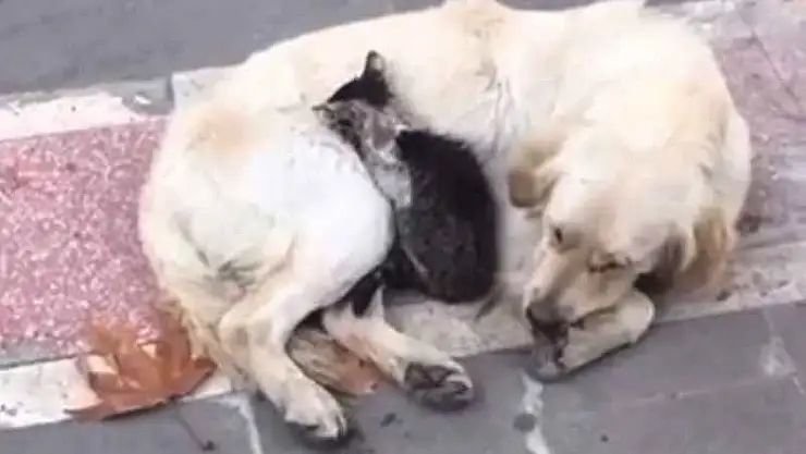 Batman'da soğuk havada iç ısıtan görüntü: Yavru kedi, köpeğin kucağına sığındı