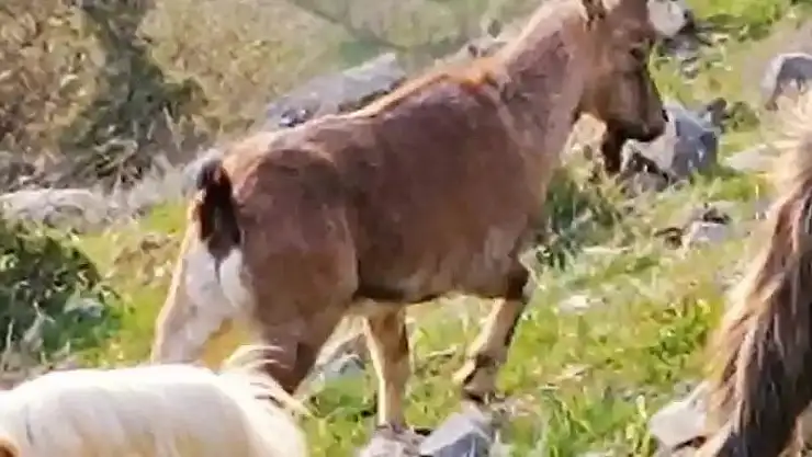 Batman'ın Sason ilçesinde keçilerini dağda otlatırken sürünün arasına karışan bir dağ keçisini gören çoban o anları cep telefonu kamerasıyla kaydetti.