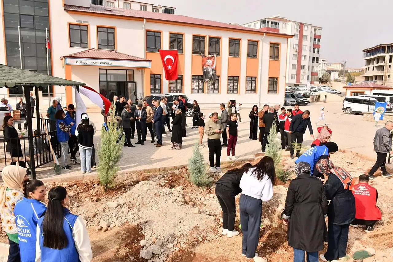 Besni ilçesinde 11 Kasım Milli Ağaçlandırma Günü kapsamında Dumlupınar İlkokulu'nda fidanlar toprakla buluşturuldu.