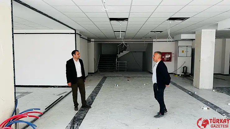 Besni Kaymakamı Çağlar Partal, yeniden hizmet vermeye hazırlanan kütüphane binasında incelemelerde bulundu.