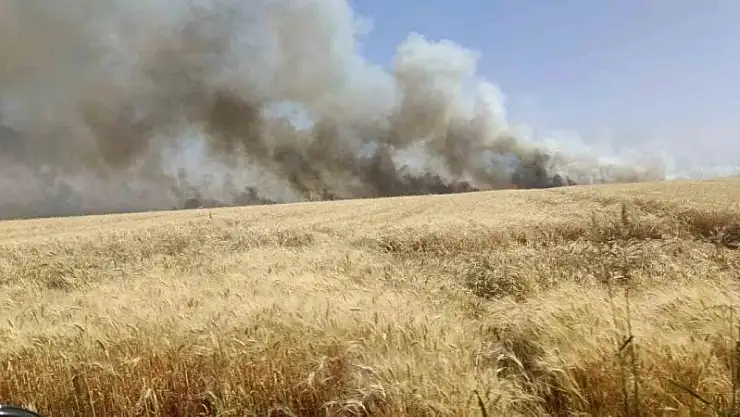 Şanlıurfa'nın Ceylanpınar ilçesinde ekili arazide çıkan yangının başka tarlalara da sıçraması nedeniyle yaklaşık bin dönüm buğday küle döndü.