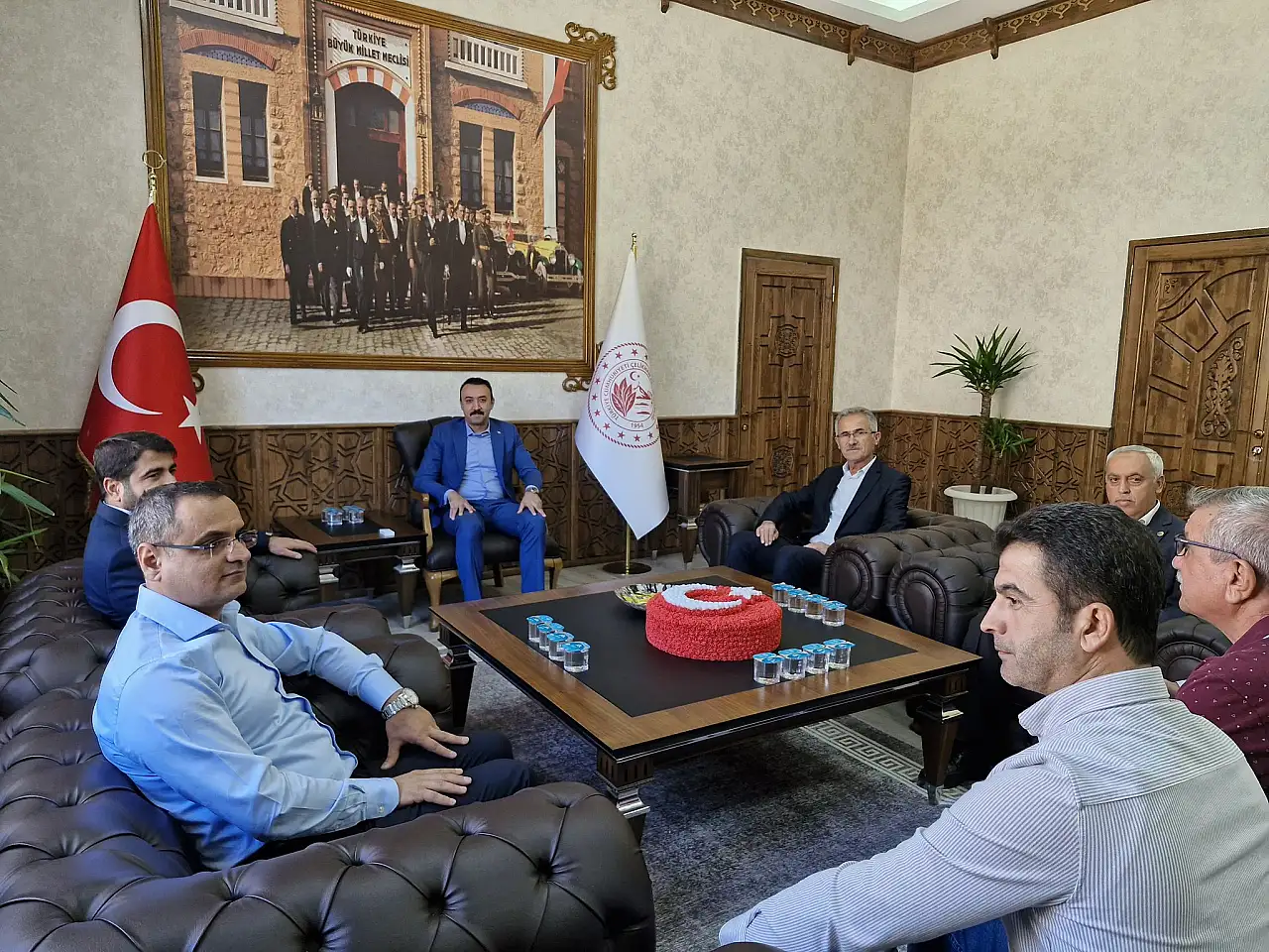 Büro Memur Sen Şube Başkanı Resul Taşkın, Yönetim kurulu üyeleri, Çelikhan İlçe Temsilcisi Ekrem Gündoğar ile birlikte, Çelikhan Kaymakamı Özgür Pelvan’a hayırlı olsun ziyaretinde bulundu.